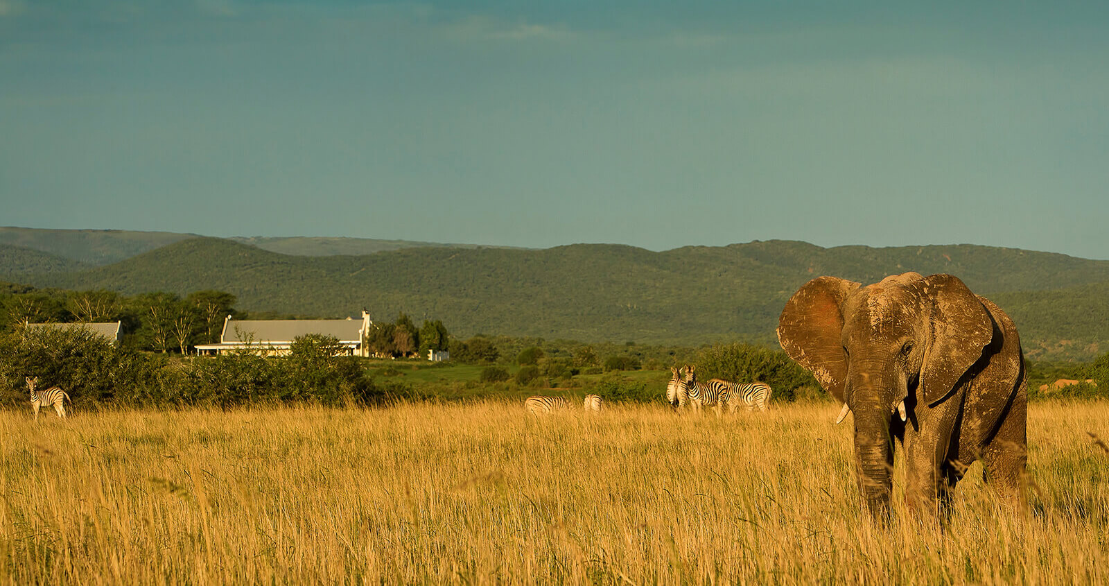 The upmarket lodge boasts the style of fine country living. Eight luxuriously spacious standalone suites offer a colonial-style theme with private viewing decks. The honeymoon suite additionally has a private plunge pool. There is also a three-bedroom villa for groups and families, just a short drive from the main lodge. The lodge serves exceptional cuisine with African themed evenings and gourmet barbecues near the waterhole. The tranquillity of the lodge setting makes it the perfect place to destress and unwind. Lush gardens, a swimming pool, and a pampering spa provide a haven of relaxation. For those seeking a bit more adventurous activity, elephant rides in the Greater Addo can be arranged as well as horseback riding, cultural and historical excursions. There are plenty of exciting activities for kids, making the lodge an ideal safari destination for families. Exclusive game drives for families or guest parties can also be arranged.