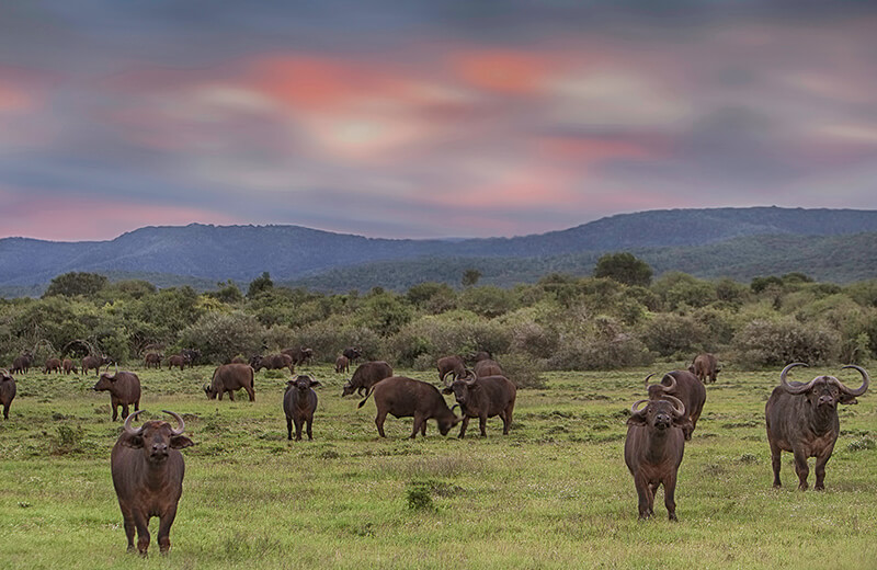 River Bend Lodge is a game reserve set on a 14 000-hectare private concession within the Greater Addo National Park in the Eastern Cape. Located at the top end of the Garden Route, it is a convenient 45-minute drive from Port Elizabeth Airport. The River Bend Lodge Reserve boasts beautiful African landscapes consisting of 5 different biomes, making this an ideal place to find a large variety of wildlife species. The reserve is home to the Big 5, over 300 bird species, and also boasts the densest African elephant population in the world. Expert rangers ensure an exhilarating safari experience with a wealth of knowledge about wildlife and skillful animal tracking.