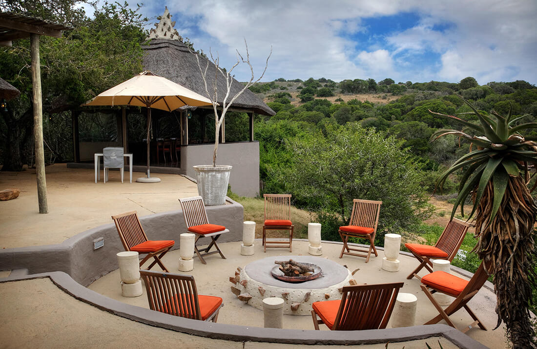 Four star rated Safari Lodge in a valley of indigenous bush at the northern boundary of Amakhala Game Reserve, offers the three-day Tuskers Package which, along with activities on Amakhala offers a game drive into Addo Elephant National Park. African tribal design-inspired owners and artists, Mike and Justine Weeks’ meticulous attention to detail is reflected in the fine African beadwork and handcrafted designs that are evident throughout this prestigious lodge. This thatched lodge with its unique safari suites and signature stone-capped roof tops, offers all the comforts of a luxury lodge and is an undisturbed retreat where you can regenerate your soul and tune into the sounds of nature. The view from the safari suites and lounge area is of the waterhole where monkeys come to play and antelope and zebra to quench their thirst.