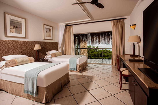 The 58 sqm Beach Villas offer an open-plan design with floor-to-ceiling doors. Beach Villas feature King size beds (or twin), en-suite bathroom Read morewith indoor rain showers, a feature tub overlooking the ocean and direct access to the beach with sun loungers and a hammock.Less