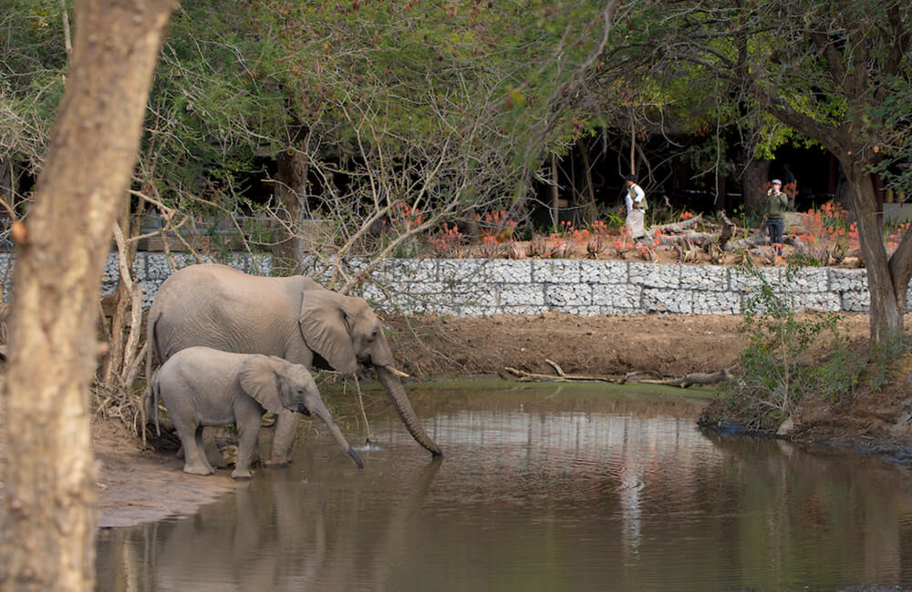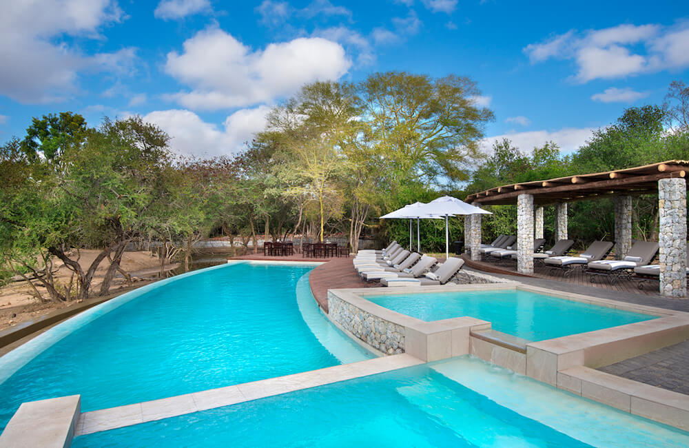- A large rim-flow swimming pool with stunning views of a lively waterhole.