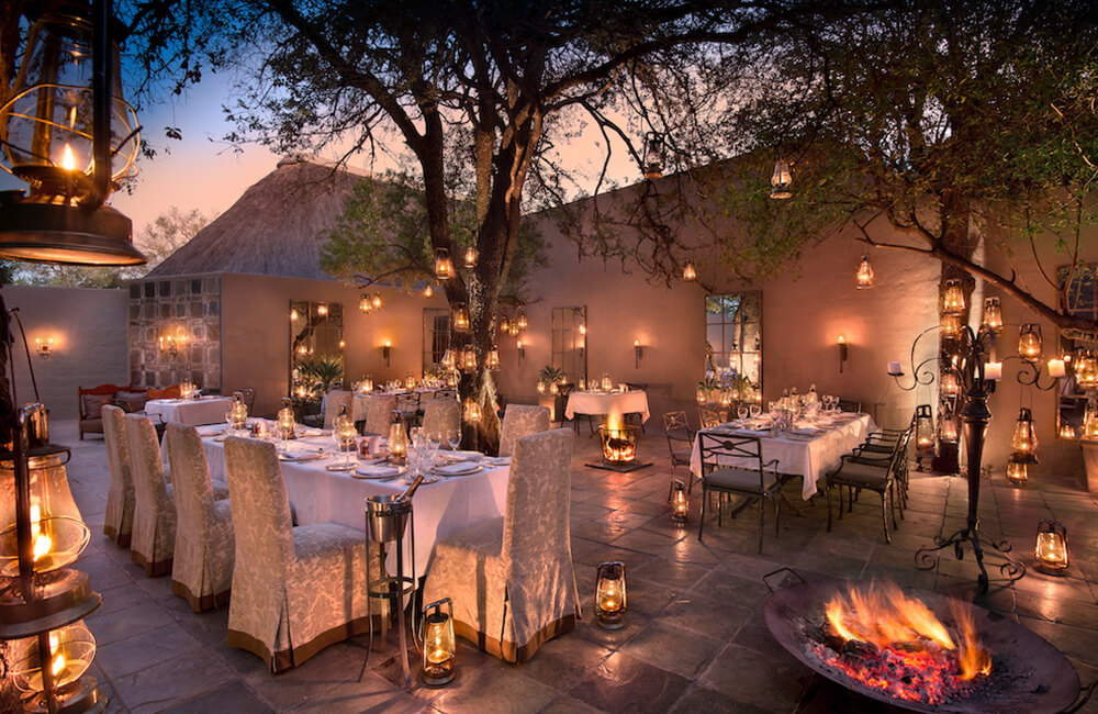 - Exceptional dining in a candlelit courtyard or a traditional open-air African boma beneath the stars.
