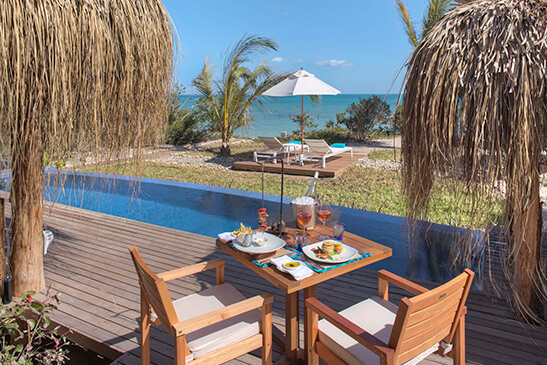 Premium drinks and champagnes, guided specialist activities, private dining events, beach picnics, spa treatments, laundry and anything not mentioned in the inclucusions above. Bazaruto National Park levy (approx. US$15 per person).