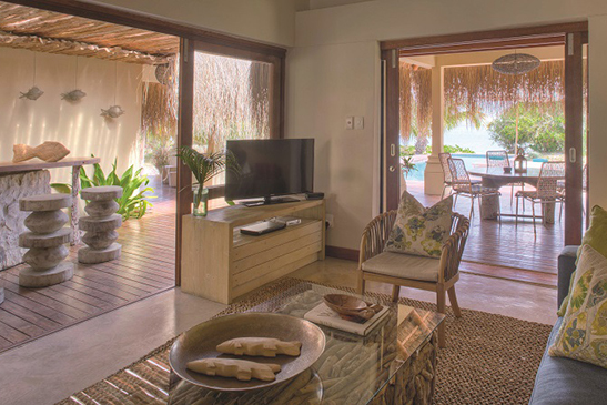 Villa Amizade is a 2 bedroom en-suite villa located at the end of the property opening onto extensive decking, with dining and relaxation areas, day-beds and sun loungers, private beach sala and plunge pool. The villa features a small kitchenette Read more , air-con and fans, butler-host service and all of the finest amenities. Private chef service, available at a supplement. Less