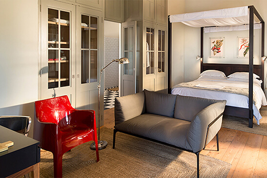 The one-bedroom Farmhouse Suites offer simplistic and contemporary luxury infused with rustic farm-style accents. Bedrooms feature a four-poster king-size bed, opening to an en-suite marble bathroom and walk-in closet. Rooms feature a cast-iron fireplace, air-conditioning, underfloor heating, minibar, coffee facilities, television, and Wi-Fi.