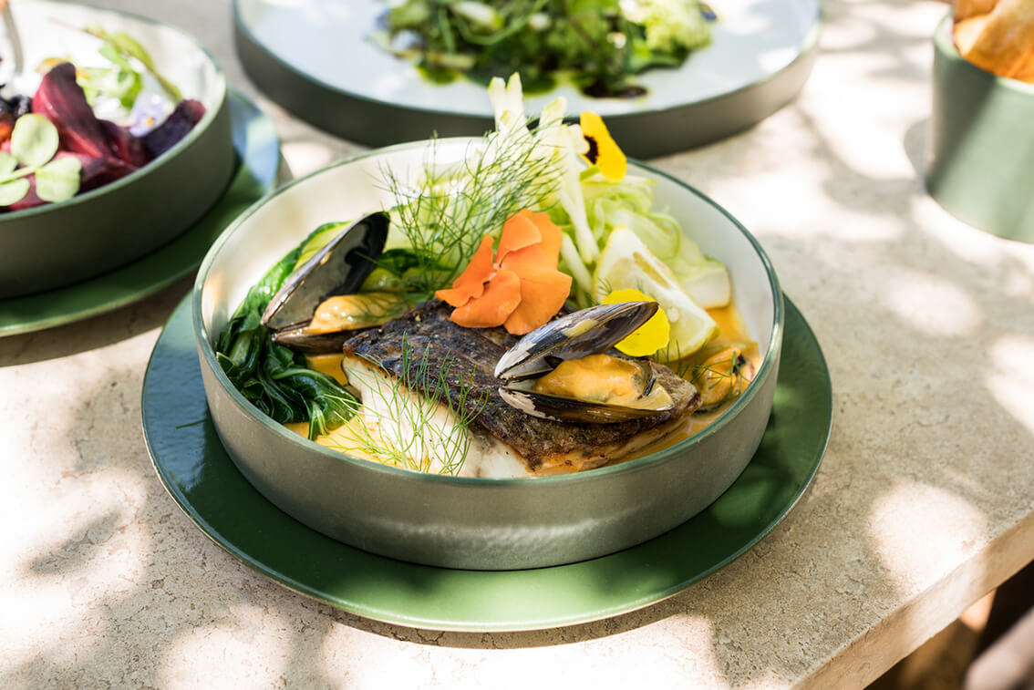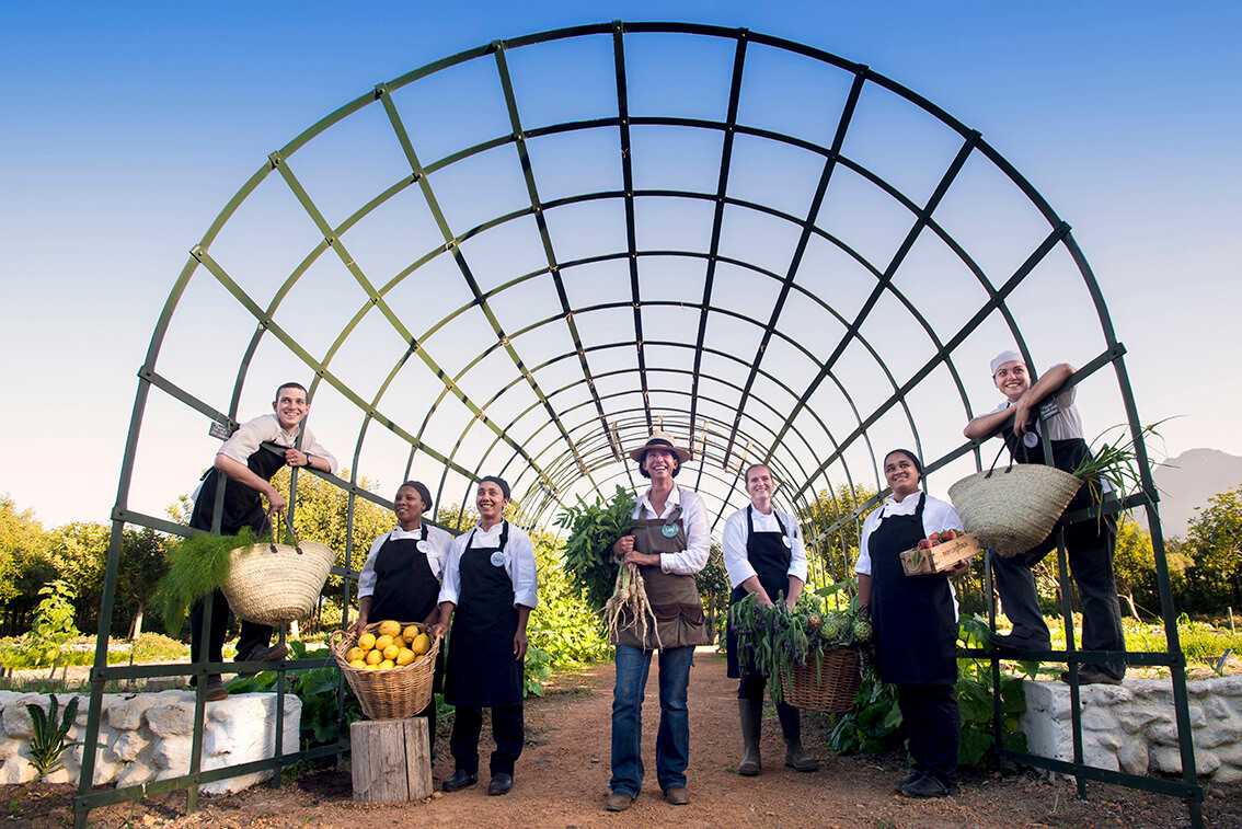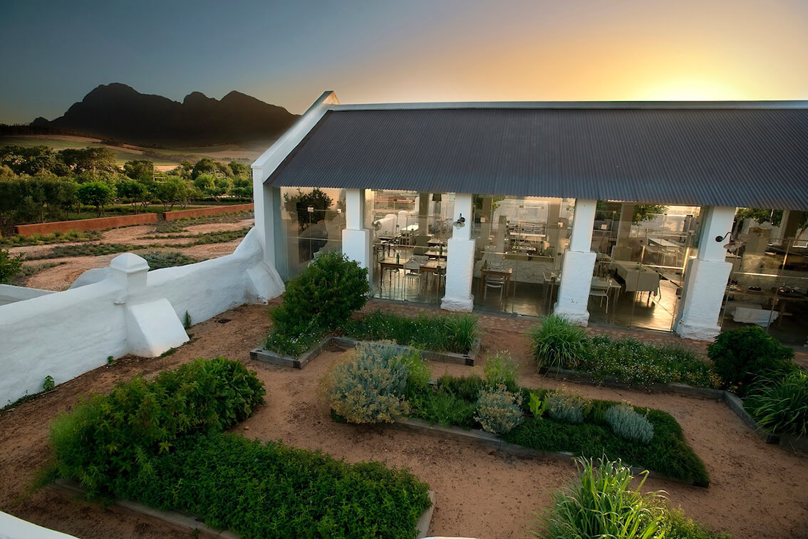 Put your feet up in the Butterfly Room lounge and library with a pre-dinner drink. At Babylonstoren Wine Estate Dinners and lunch (on selected days) are served at the on-site Babel restaurant with a farm-to-table philosophy, serving all that is freshly grown on the farm. The custom-built Greenhouse offers light seasonal lunches, fresh bread from a wood-fired oven, and cheeses with deli delights.