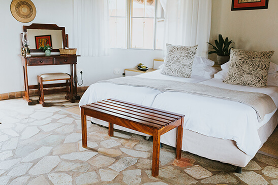 This luxurious suite features a private swimming pool, indoor and outdoor showers, free-standing bathtub, and exceptional views.Enjoy complete privacy in this haven of relaxation where you can enjoy exclusive dining, a couple’s massage, andfront-row game viewing seats. In-room amenities include insect-proofing, air conditioning, a minibar, and coffee facilities.