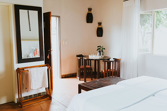 Perfect for families, these units are designed with two interleading rooms, each with its own facilities and an outdoor shower. Units are air-conditioned and space is provided for an extra bed allowing a family of 6 to sleep in comfort.