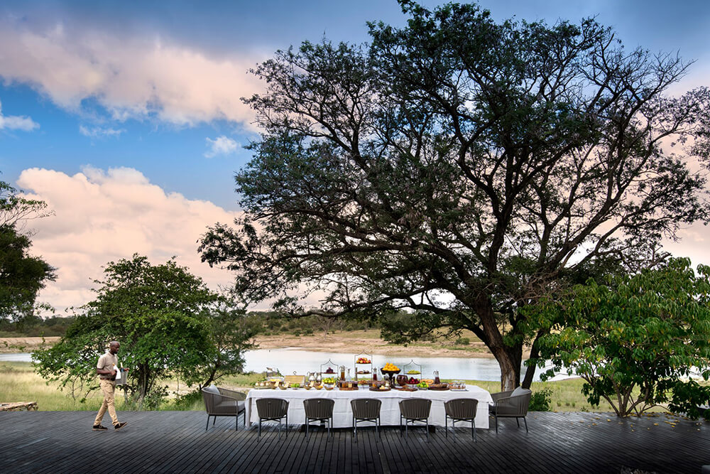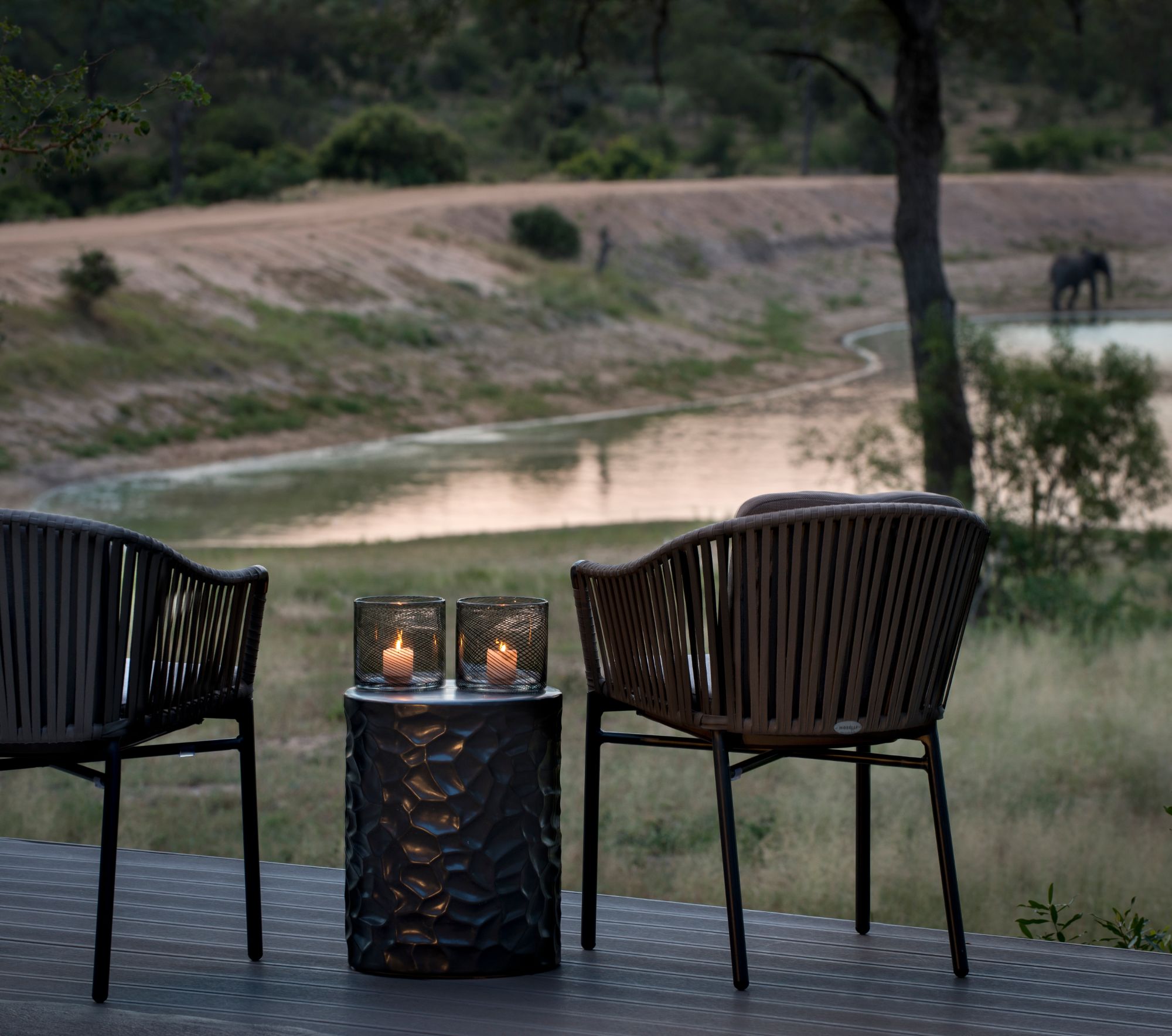 - Animals gathering at the water’s edge can be seen from the lounge, dining areas, and deck.