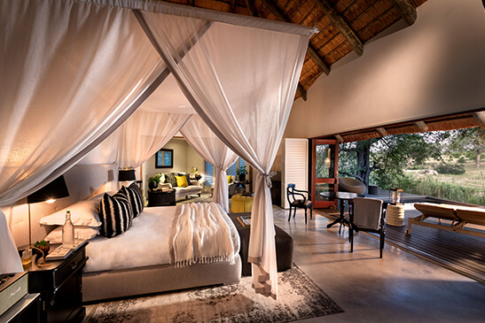 The Main Lodge offers 6 exquisite suites shaded by old Knobthorn trees each with a private lounging deck, a plunge pool, and spectacular lake views providing superb game viewing as groups of wildlife are drawn to the water’s edge. Each luxury unit offers a bathtub, Read moreindoor and outdoor shower, air-conditioning, fan, minibar, and fireplace. Luxury Suites can accommodate up to 2 extra beds for children under the age of 12 years. Less