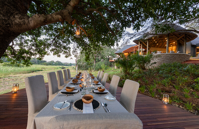- Bush picnics along the riverbanks, riverside lunches under a mature sausage tree, and fireside dining in the traditional Boma.