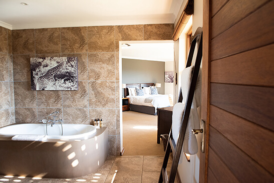 Fynbos Villas are situated adjacent to Kwena Lodge with easy access to the lodge facilities and game drives. Each stylish thatch villa offers a spacious interior with three large en-suite bedrooms with expansive outdoor decks from which to enjoy spectacular views. Read moreFurther luxurious amenities include a fireplace, barbecue, soaking baths, walk-in showers, double vanity, and fully equipped kitchen with microwave and dishwasher. Less