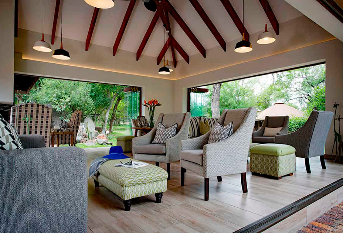 Safari chalets are elegantly decorated with African-inspired furnishings, offering a warm welcome to the South African bush. Enjoy comfort in each chalet, featuring cozy beds, air conditioning, and mosquito nets. Each chalet is en-suite with full bathrooms and include indoor and outdoor showers. Read moreEach chalet has a private deck with splendid bush views, where you can observe various wildlife. Less