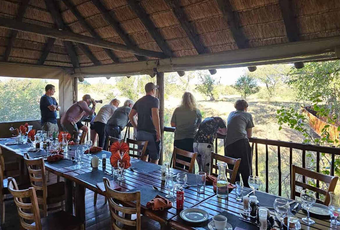 Throughout the day and evening, guests can unwind at our fully-stocked bar or gazebo, enjoying panoramic views of our resident nyala and diverse birdlife. As night falls, the fire pit and open-air Boma provide a cozy ambiance for guests to gather and share safari experiences. Our morning and evening drives offer exhilarating wildlife encounters, guided by experienced rangers and trackers.
