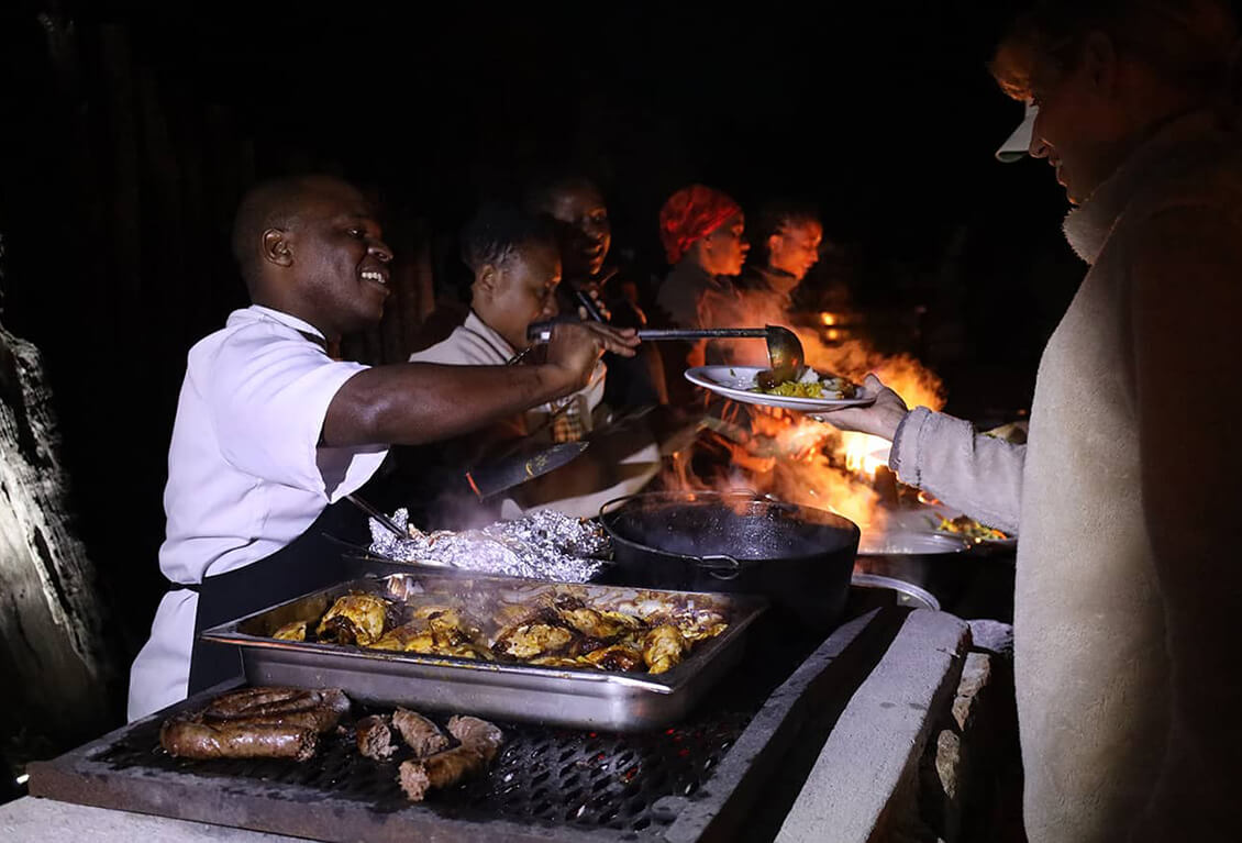 - Outstanding outdoor dinning next fireside in the African Boma.