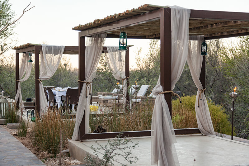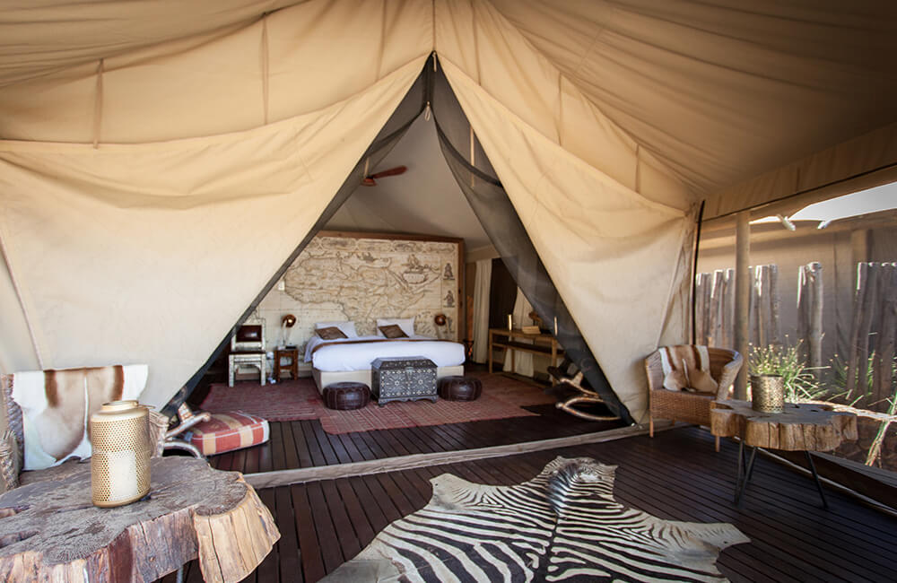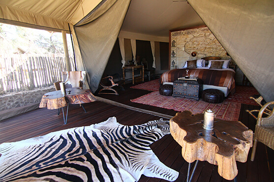 Kuganha’s tented suites at Inverdoorn Game Reserve are a magnificent way to spend a getaway in the wild in utmost luxury. Experience the wonder of nature, untamed wildlife, and African hospitality. The camps pool with deck and loungers is a great place to relax and soak in the sunshine, whereas evenings are shared dining under starry skies. The private Kuganha chef will prepare a three-course dinner while you enjoy drinks next to a crackling bonfire. Fall asleep to the sounds of the wild, in the solace of your lavish tented retreat.