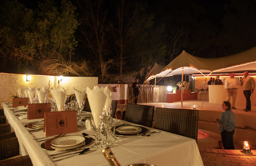 Seven individually furnished white chalets are set amidst contrasts of cactus, green grass, thorny bushes, green grass, and shady trees. The lodge at Inverdoorn Game Reserve also offers exclusive luxury suites as well as family accommodation. Relax and unwind at the lodge enjoying the sweeping views over the game reserve, cool down in a glorious pool or, in winter, cozy up next to a crackling fire. With passion and respect for nature, Inverdoorn Game Reserve grows its own vegetables complimenting delicious French cuisine with a South African flair. Peaceful nights in the Karoo are a spectacle of glistening skies perfect for endless stargazing.