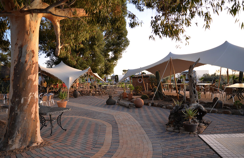 The seven Tankwa Chalets each feature their own private veranda overlooking a cactus garden. Equipped with bathrobes, towels, a walk-in shower, air-conditioning, and a cozyfireplace, you’ll be all set for a great getaway in the bush.