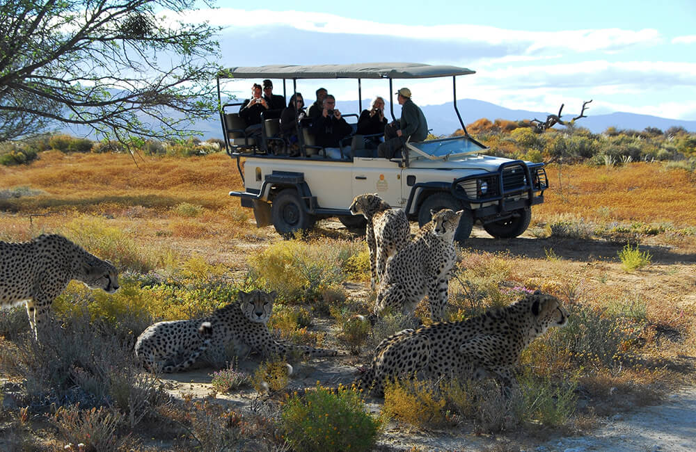 A mere 2.5-hour drive from Cape Town, Inverdoorn Game Reserve provides a close and convenient safari experience for visitors to Cape Town. The 10 000-hectare private game reserve in the Klein Karoo is home to an array of wildlife species. Although the reserves close to Cape Town are not as populated as those in the Kruger Park and Eastern Cape, it still provides an incredible wildlife experience. The 2-hour safari drives at Inverdoorn Game Reserve are taken by highly experienced and passionate rangers who will guide, educate, and entertain you. Game drives take place in open 4×4 vehicles twice a day. This safari at Inverdoorn Game Reserve affords you the opportunity to see the Big 5 as well as an abundance of wildlife including zebra, giraffe, hippo, and a variety of antelope. Known for its cheetah rehabilitation centre, Inverdoorn has rescued and returned these magnificent big cats to the region.