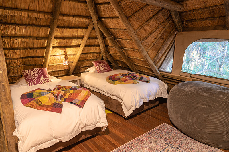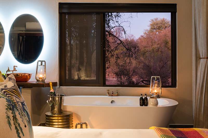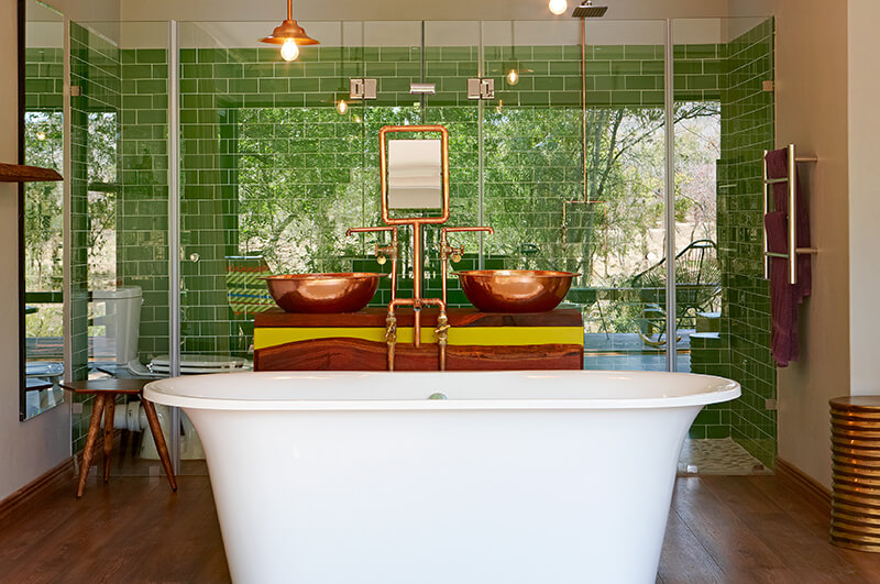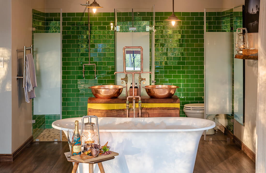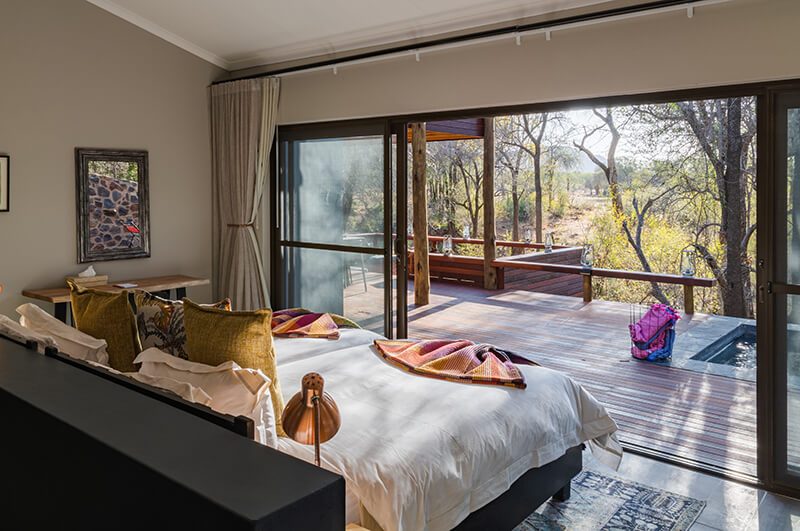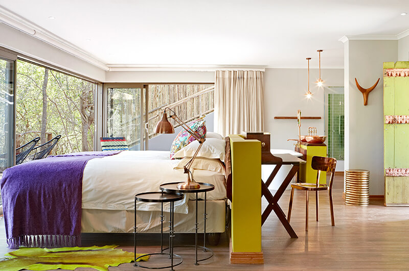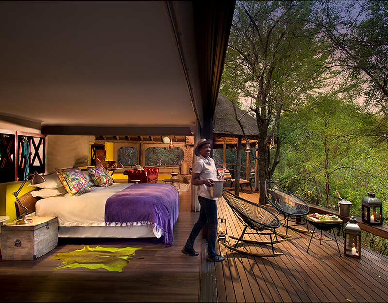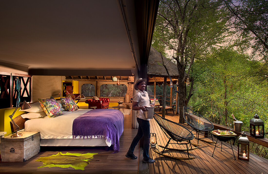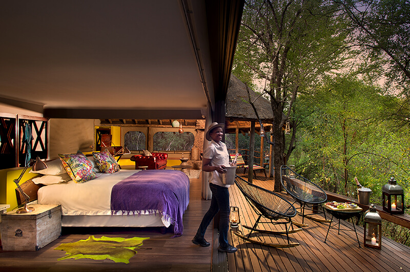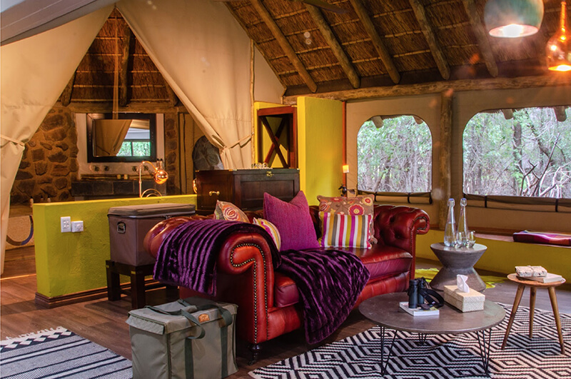 Winner of the Luxury Game Lodge category at the 2022 World Luxury Hotel Awards, Jaci’s Safari Lodge is a truly unique experience. Where many safari lodges integrate neutral colour palates into their room and living space designs, Jaci’s Safari Lodge embraces the bright colours characteristic of traditional African culture. By intertwining organic materials with vivid accents, guests here have an experience that is as relaxing as it is exciting and as playful as it is enchantingly contemporary.