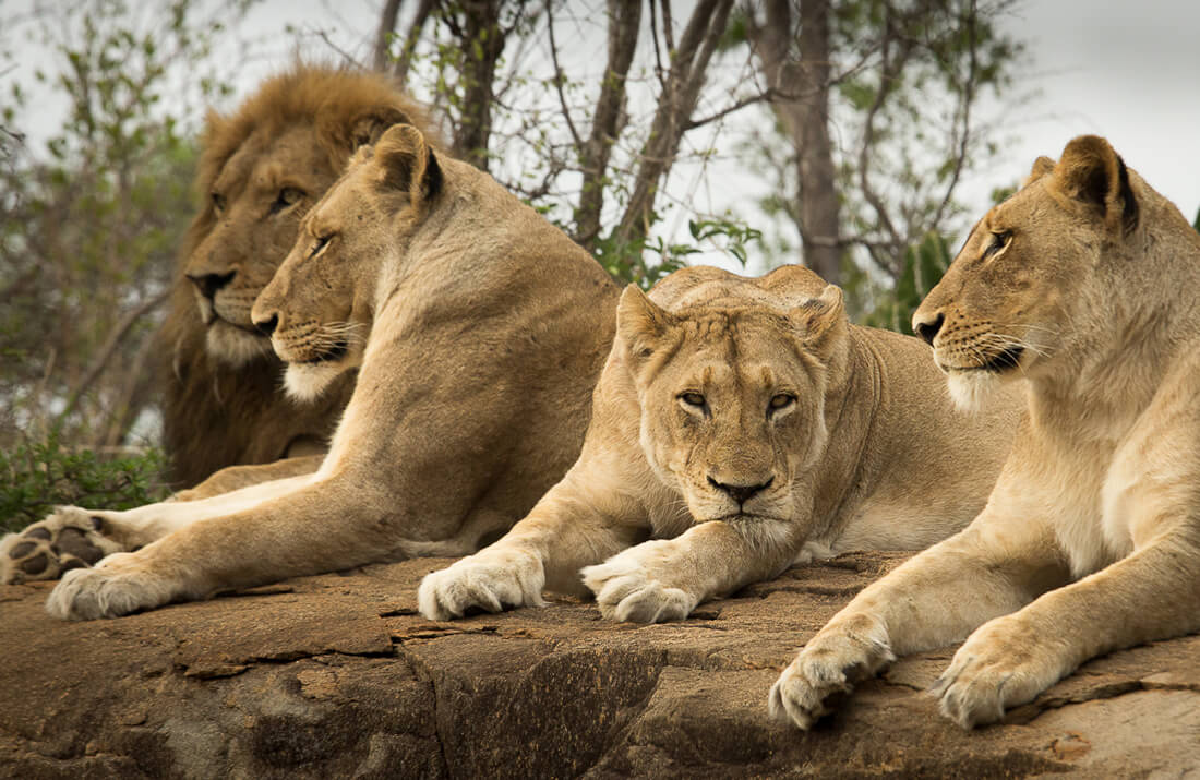 - Big Five (lion, leopard, elephant, buffalo and rhino).