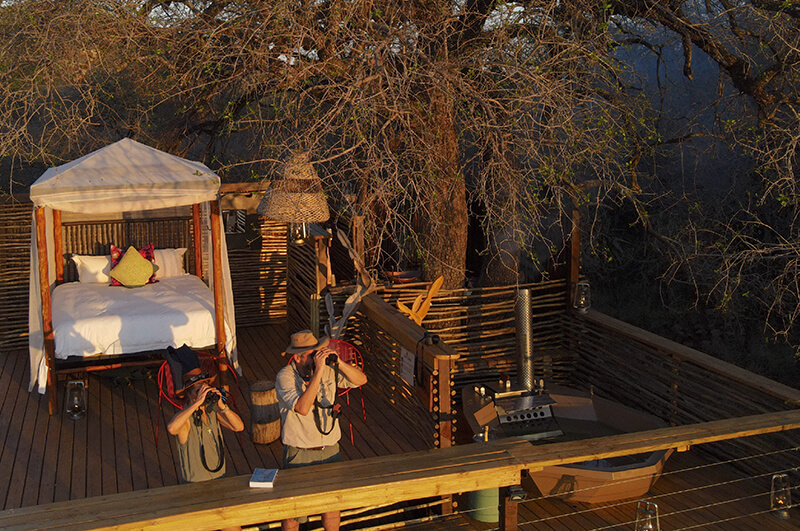 - Tlou Lookout Deck overlooks a waterhole frequented by wildlife.