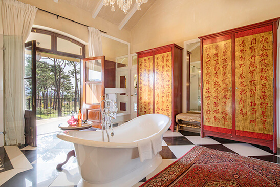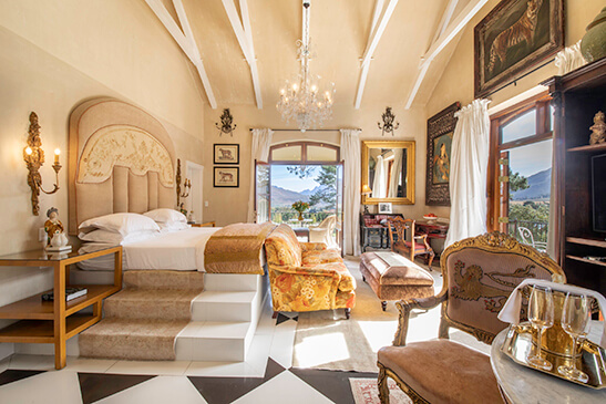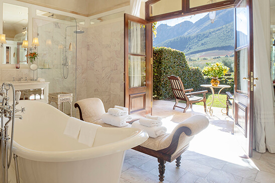 Head an hour outside Cape Town city and you will find yourself surrounded by vineyards, plum orchards, and mountain ranges in the enchanting Franschhoek valley. La Residence in Franschhoek exudes over-the-top luxury and relaxation, French-inspired old-world elegance, and countryside charm.