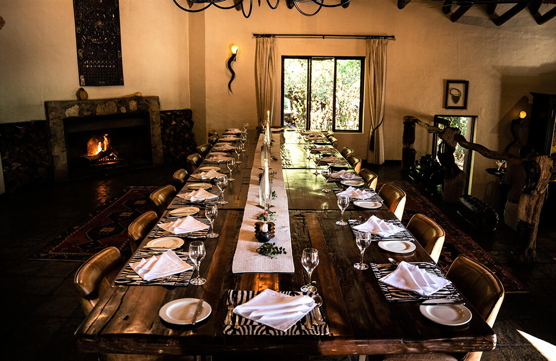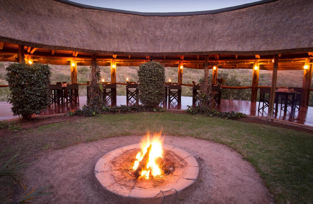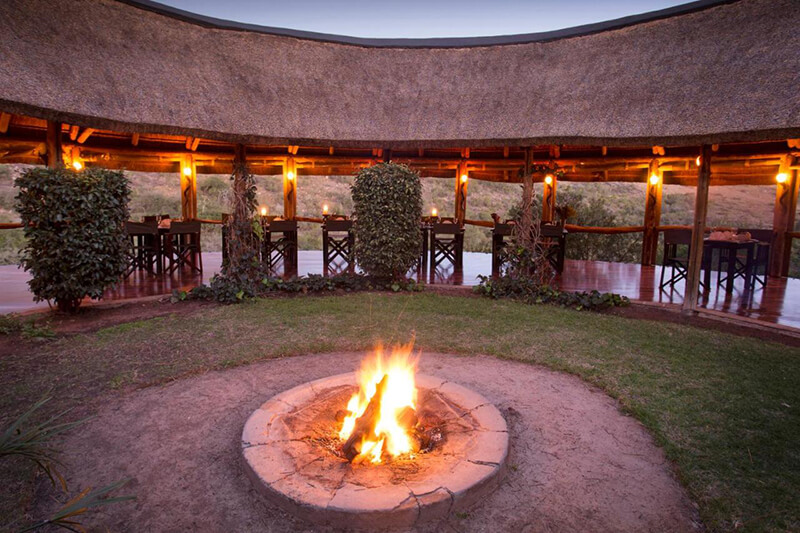 Outstanding outdoor dinning experiences in a traditional African Boma overlooking a spotlighted waterhole, frequented by local wildlife.