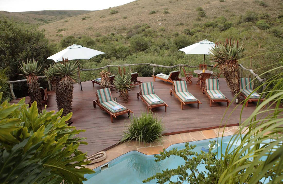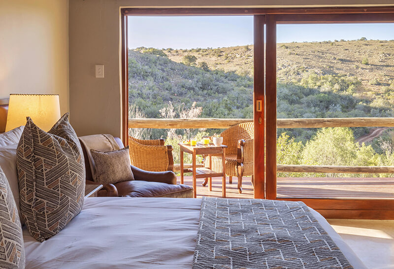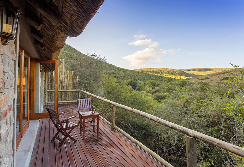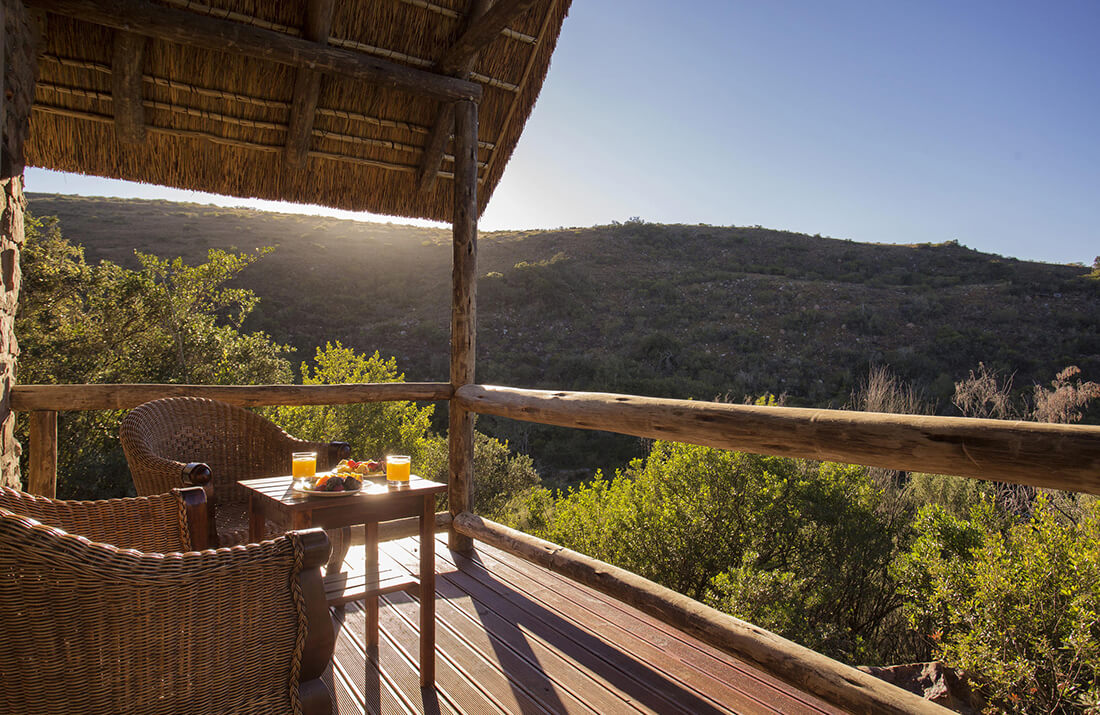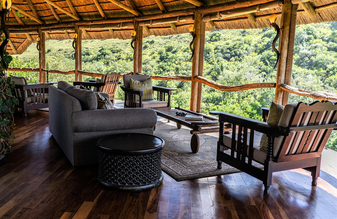 5 spacious luxury suite with a thatched roof and stone clad exterior walls feature a private decks with stunning views over the reserve. Suites have bathrooms with a shower, ball & claw bath and “his & hers” basins.