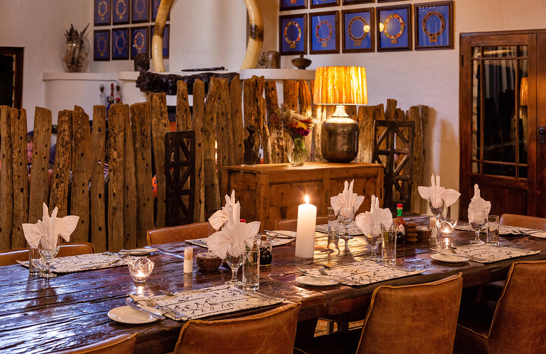 - Fireside dinners under the stars in a traditional African Boma.