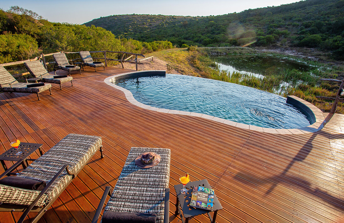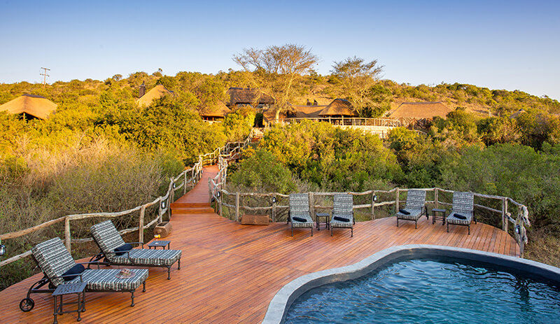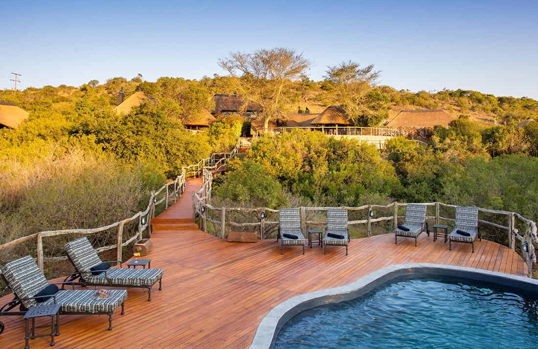 - Relaxed Pan-African decor with a lounge, viewing deck, and two swimming pools.