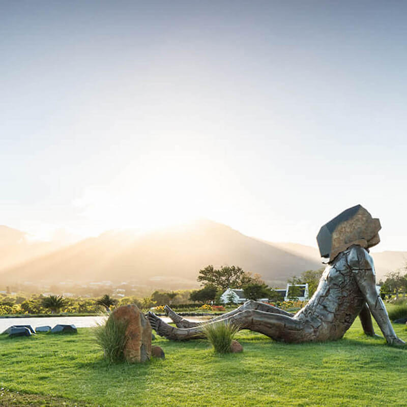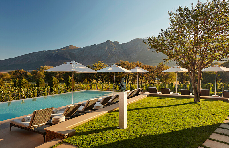 Leeu Estate five-star Cape Dutch style boutique hotel is an enchanting and luxurious destination set amidst vibrant green vineyards, manicured gardens, and expansive mountain ranges. This executive oasis of relaxation features 12 exclusive suites, a choice of award-winning gourmet dining options, and an art gallery. Set in the scenic Franschhoek village, the surrounding countryside is home to numerous pristine wine estates, with ample prospects for sampling internationally acclaimed vintages. You will also find some of the county’s best fine dining restaurants in the area and enjoy chocolate tastings. The mountains offer plenty of opportunities for hikes, biking, picnics, and fishing. Embark on a horseback wine-tasting journey or breath-taking helicopter flip.