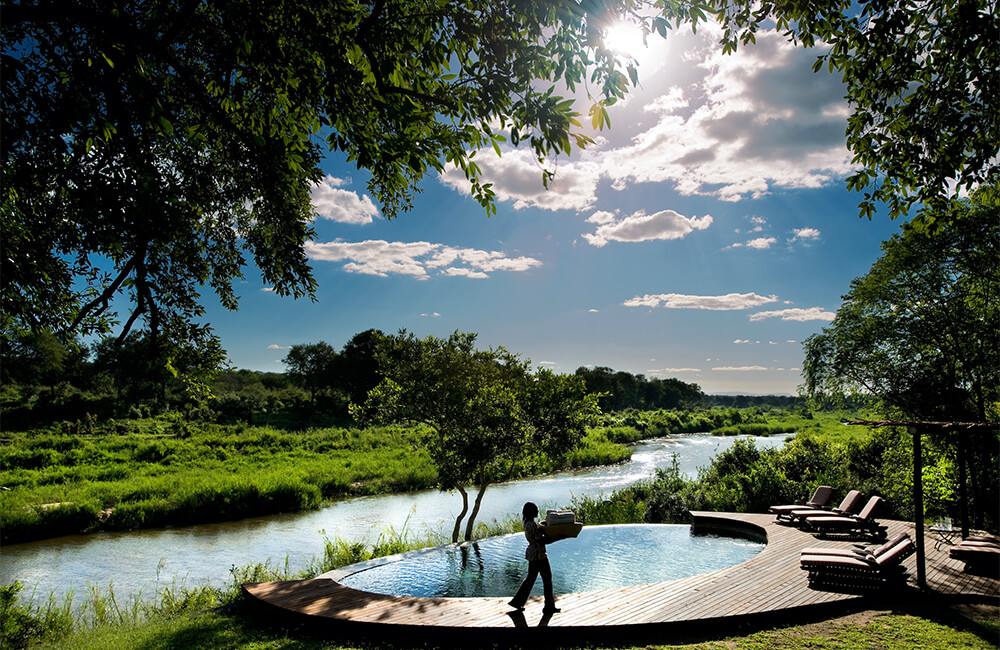 - Luxury 5-star safari lodge set apart on a high bank up from the Sabie River.