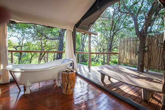 - 4 luxury safari tents are situated along the edge of a peninsula, offering stunning views of the Msunduze riverbed.