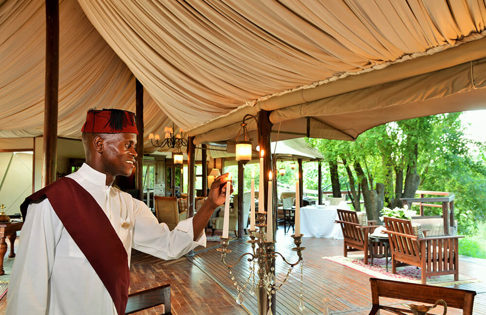 - 6 secluded Luxury tents, elevated on timber walkways, nestled among ancient Jackalberry trees.