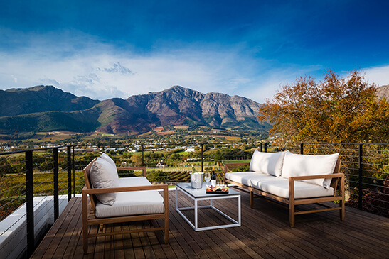 Mont Rochelle Hotel is a romantic and secluded retreat in the Franschhoek Winelands set on 39 hectares of expansive vineyards and hills. Mont Rochelle produces wine on-site, allowing guests to tour the cellars and wander the vineyard paths.