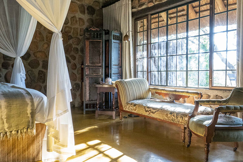 The Main Camp features 15 bungalows, each decorated in a style that captures the vibrant essence of South Africa while maintaining a refined, elegant atmosphere. These bungalows, set amidst the bushveld, provide a private retreat where you can unwind in comfort. At night, rangers will escort you to your room, offering both safety and a deeper connection to the environment.