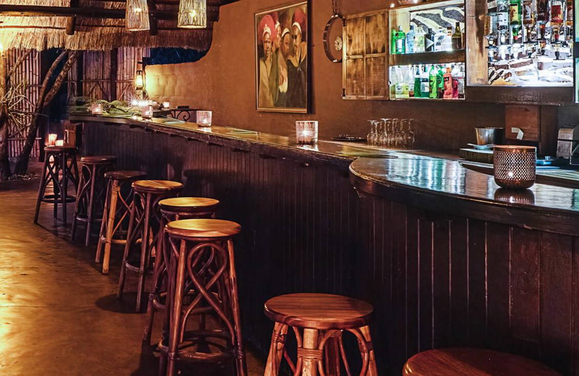 - Two bars complement the relaxed atmosphere of the dining area.