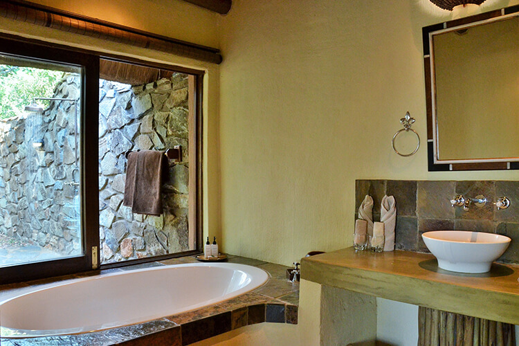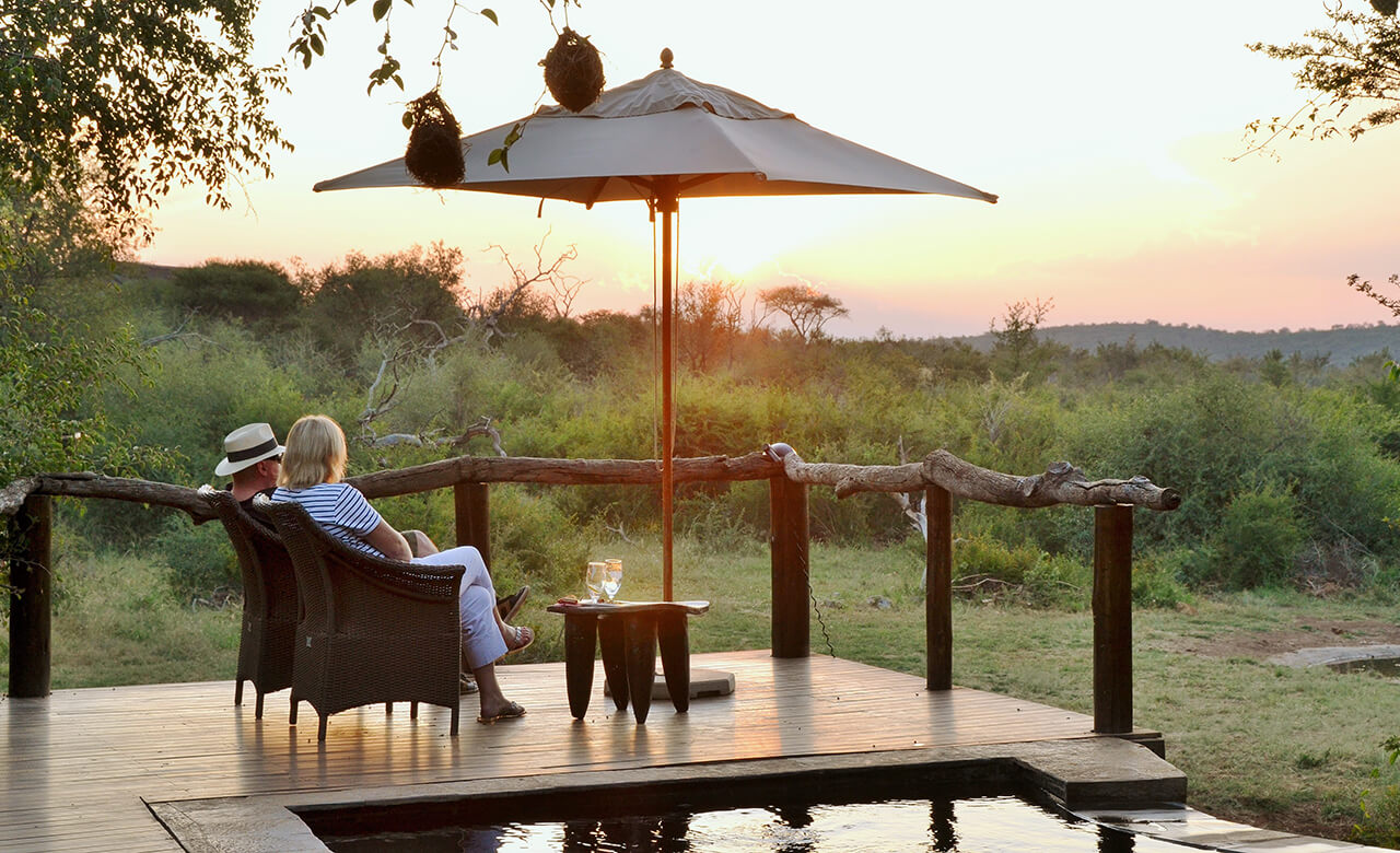 Each Luxury Bush Villa boasts a spacious interior opening onto a private wrap-around timber viewing deck. The thatch suites feature alfresco rock showers, corner bathtubs with a view Read more, a double vanity, and a cosy gas fireplace. Less