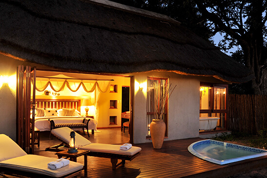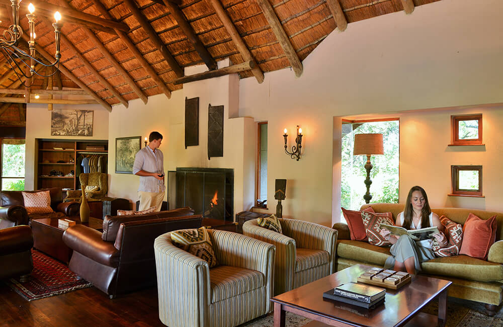 - A traditionally styled safari retreat featuring classic decor with thatch, stone, and timber elements.