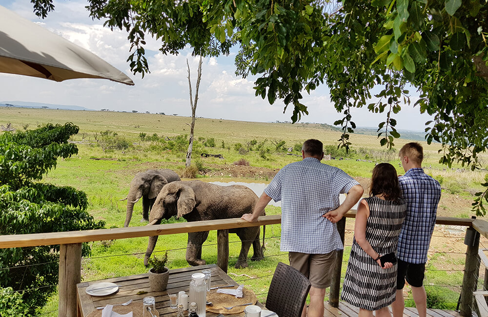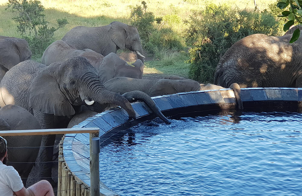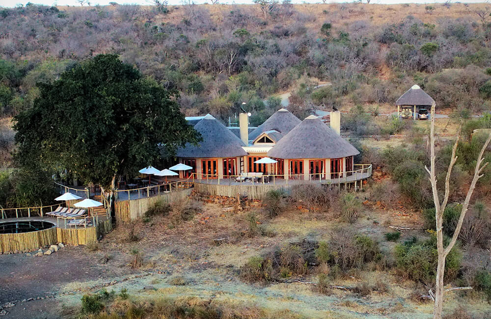 - 5-stay luxury safari lodge perched on the edge of a waterhole overlooking the reserve.