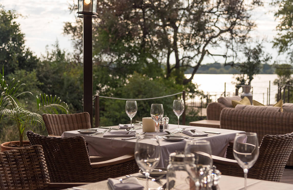 Guests at Zimbabwe’s Old Drift Lodge can explore the wild surrounds on inclusive guided 4 x 4 game drives, morning and afternoon river safaris, as well as safaris on foot. A guided tour of the Falls and rainforest is also included as well as complimentary transfers to the Lookout Café. Dine 120 metres above the raging rapids of the Zambezi and marvel at the spectacular Batoka Gorge. Evenings can be spent sipping wine under the stars next to a crackling fire and enjoying crafted cuisine with an African flair. Local products are paired with modern cooking techniques to showcase a taste wonderland on every plate.