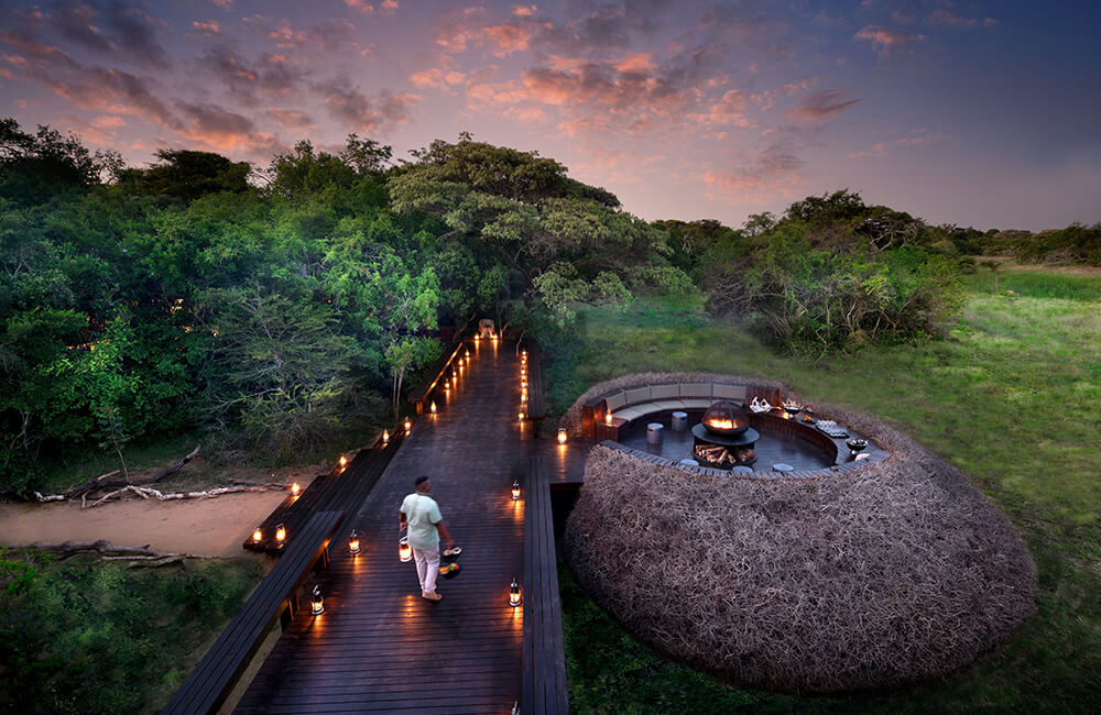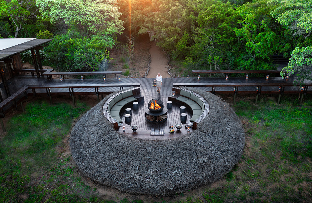 Cozy luxury cabins at Phinda Forest Lodge are set within 1000 hectares of unique dry sand forest in the 28,555-hectare Phinda Private Game Reserve located in KwaZulu Natal. This specific ecosystem is the last of its kind in Africa and forms part of 7 other habitat types within the reserve. Phinda Forest Lodge is one of the world’s first eco-designed luxury safari lodges with 16 luxury suites boasting floor-to-ceiling windows looking out onto the unique forest in a fairy-tale setting. Savour the forest sounds and chirping birds from secluded private balconies over morning coffee. The luxury lodge’s communal area features a rim-flow swimming pool and spacious deck with panoramic views over open grasslands and a small waterhole. Evenings at Phinda Forest Lodge are a celebration under the stars with fine cuisine, crackling fires, and a romantic lantern-lit outdoor setting.