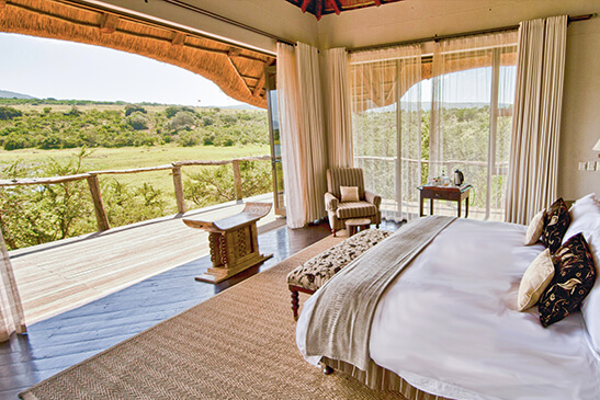 The Kudu suite is a 2-bedroom, 2-bathroom chalet with a lounge area and wraparound deck boasting breath taking views over the reserve. The suite features a steam room, private plunge pool and alfresco shower.