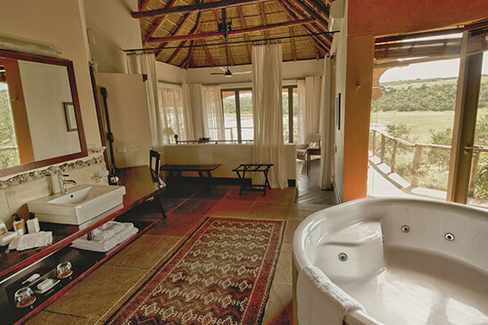 Impala chalets boast viewing decks for game viewing with private plunge pools and alfresco showers. Bathrooms offer free-standing bathtubs whilst fireplaces add warmth to the rooms on chilly nights.