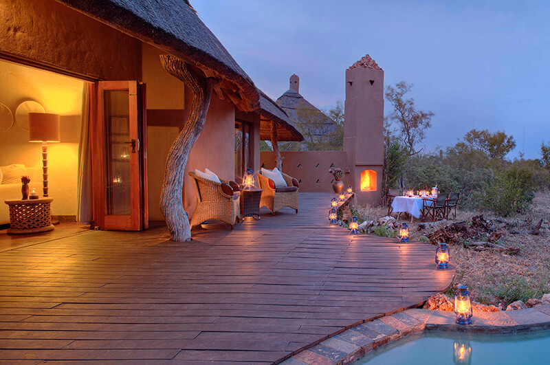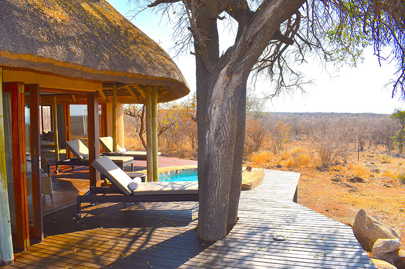 Set in the expansive Madikwe Game Reserve, Rhulani (which means relax) is a place where you can pause for a moment in the beauty of untouched nature. Soak in five-star luxury in a secluded haven or comfort and enjoy the thrill of extraordinary wildlife experiences. The Rhulani Safari Lodge main lodge area is a glorious indoor-outdoor relaxation space with a communal rock pool and sun loungers surrounded by beautiful old Marula trees.