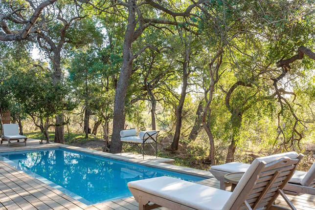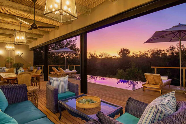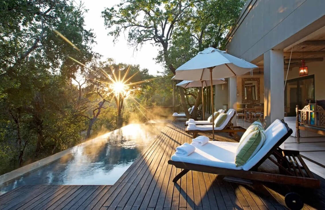Waterside house is a 4-bedroom unit in a truly beautiful setting in the reserve. The villa features wide open spaces, a large deck, swimming pool and stunning views over the surrounding bush. 4 luxury bedrooms open onto private decks. Read more Waterside house offers an exclusive experience with your own private guide, tracker and safari vehicle. Less