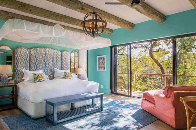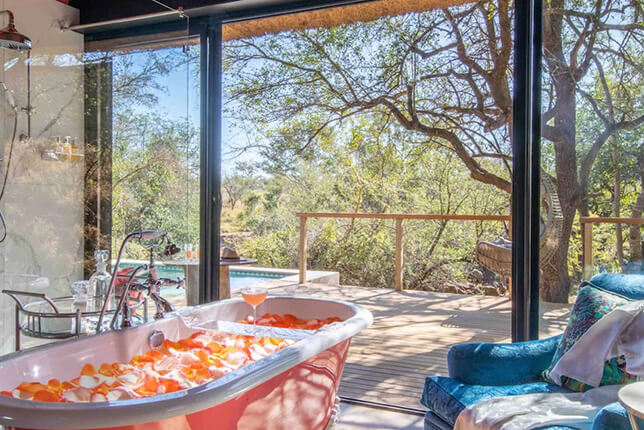 The Royal Malewane Bush Spa offers a 25m heated lap pool, three treatment rooms, fitness centre, steam room, African baths, and casitas. If you aren’t being served by a private chef and butler in the exclusive villas, enjoy feasts around glowing lanterns in the romantic Bush Tent or relax by the waterside Masiya Bar with a selection of gins and whiskies.