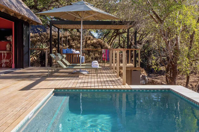 The Baobab Suite is a spacious 2 bedroom unit and boasts wide open plan spaces with a large private deck and plunge pool overlooking the reserve. The suite offers an exclusive experience with your own private guide, tracker Read more and safari vehicle. Less
