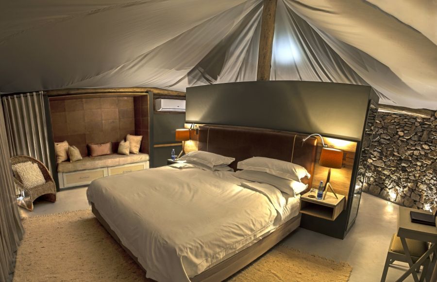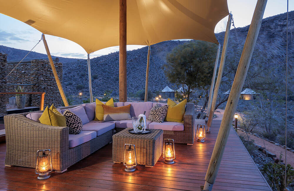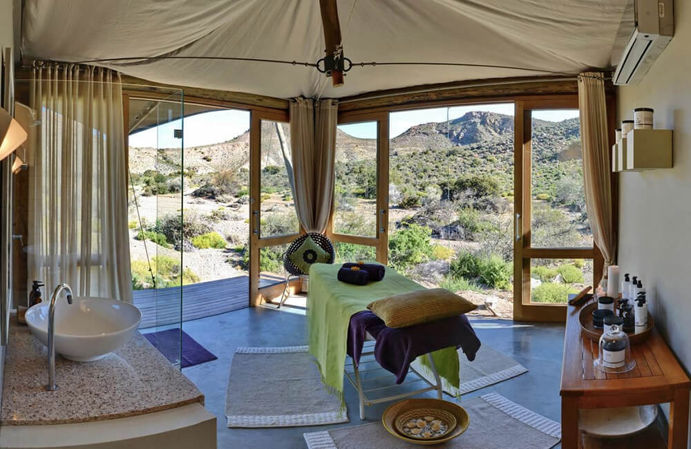 Each of the 9 luxury tents at Dwyka features a secluded deck and private jacuzzi. In addition, units have air-conditioning, heating, an en-suite bathroom with double vanity as well as a private outdoor shower.